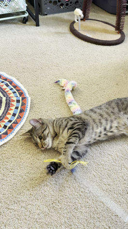 Iris is a beautiful tortie girl with a gentle, affectionate personality. River, her brown tabby brother, is just as loving and full of charm. At 6 months old, they are the perfect mix of playful and cuddly.